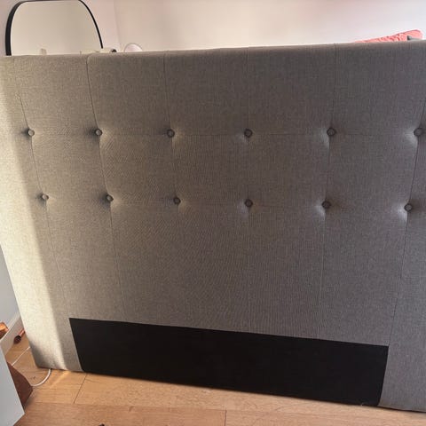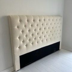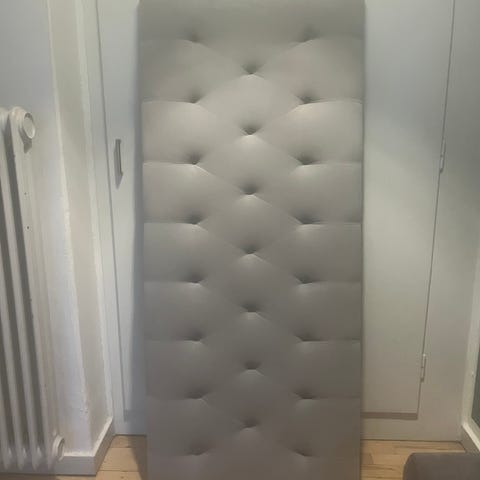 Elegant og stilfuld sengegavl med mange flotte nedtrukne knapper i klassisk chesterfield-look.