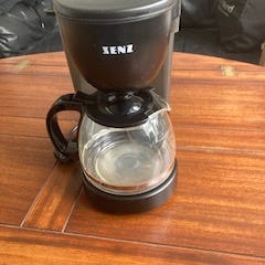 Siemens Sensor for Senses kaffemaskine med rustfrit stål og sort plast. Kaffemaskinen har digitalt display og kontrolknapper til programmering, kalkrensning og startfunktion. Designet til at brygge kaffe med præcis styring af bryggetid og temperatur.