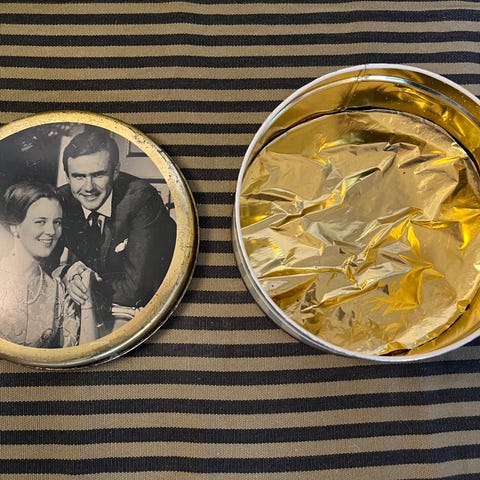 27x21 cm , med tilhørende serviet med jubilæumspåskrift ( har været våd),