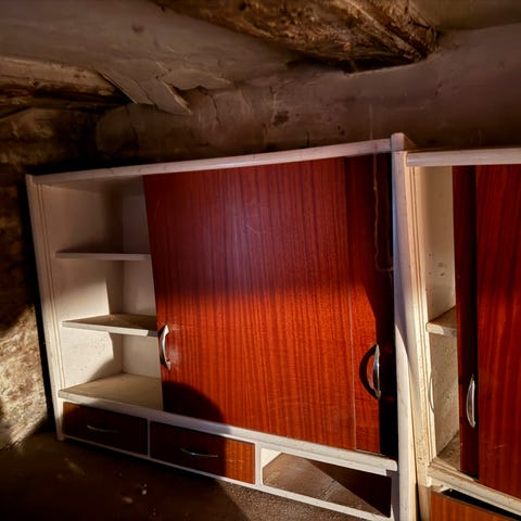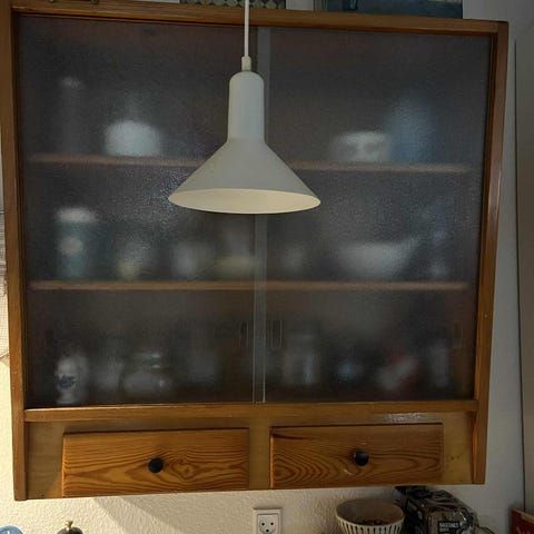 Gammelt københavner vitrine skab. Der mangler en rude.