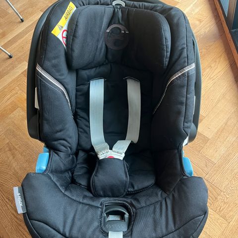 Cybex Aton autostol til baby. Der er udtagelige indlæg til hovedet for at beskytte ekstra, når baby er helt lille. Autostolen fastspændes med sele.