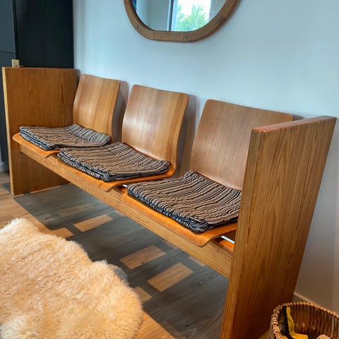 Hver bænk er unik med naturligt slid, brugsspor og masser af karakter. Træet er smukt aldrende og stadig stabilt, og konstruktionen er enkel, funktionel og ærlig – præcis som man byggede dem før i tiden. De fungerer perfekt som siddepladser i entréen, som dekorativ opbevaringsbænk, i butik eller café, eller som en del af en rå indretning i fx showroom, studie eller sommerhus.