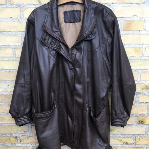 Super flot, brun læderjakke med lækreste bløde for. Stort set ikke brugt så er som ny. Str L