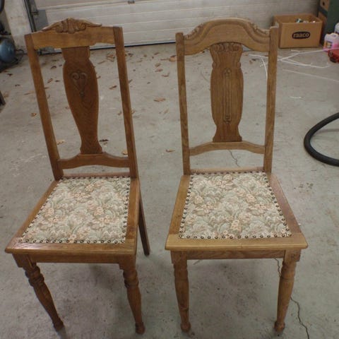 5 + 2 gamle over 100 år gamle egetræs-spisestuestole.