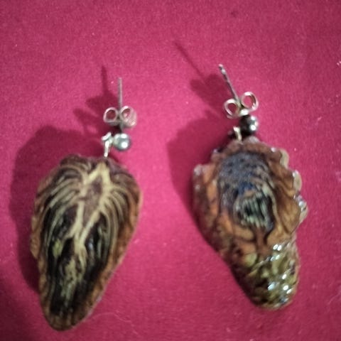 Ørestikker, træ, Større øreringe lavet af træ. Pris er pr stk.