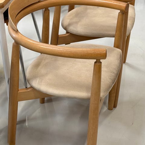 Er du vild med moderne dansk design, så har du en mulighed for et godt køb her. 8 modernistiske spisebordsstole i sortbejdset formspændt bøg på stel af metal. Stolene er designet af Hans Thyge Raunkjær for Randers A/S og er mærkede m. Danish Furniture Makers kontrol/kvalitets label. Stolene blev oprindeligt kommissioneret af et Århusiansk design- og arkitektfirma i et begrænset oplag. De kan stables. God stand m. lette brugspræg og småskrammer. Samlet pris – ialt 8 stk