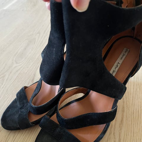 Sorte Seastar Blue italian style højehælet sko i størrelse 37, med pigge og sløjfe.