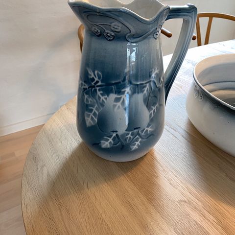 Pænt servante sæt uden skår i en knækket hvid med blåt mønster. Nummereret. Kan ses I Hellerup sendes ikke