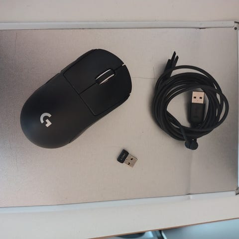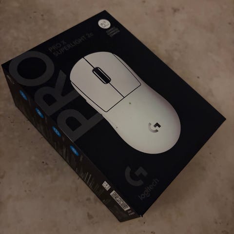 Logitech Pro X Superlight trådløs gamingmus i sort farve. Letvægtsdesign med høj præcision, optimeret til gamingbrug. Indeholder trådløs forbindelse med lav latenstid og lang batterilevetid. Leveres med USB-modtager, opladningskabel og brugervejledning.