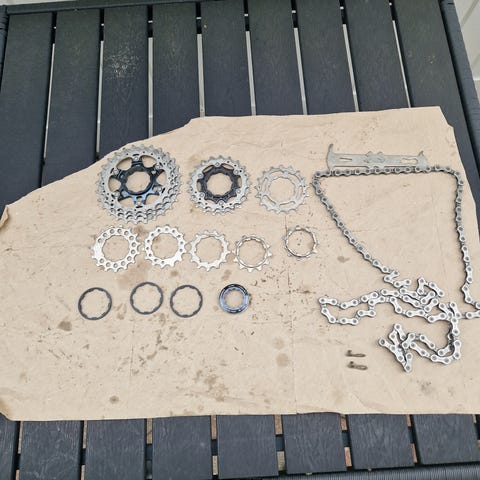 12-25. Kæde og kassetten har kørt sammen. Derfor garanti for mange restkilometer uden problemer. Kæden har meget slidstyrke tilbage som vist med slidmåleren. Kan sendes for + 50 kr. ved forudbetaling