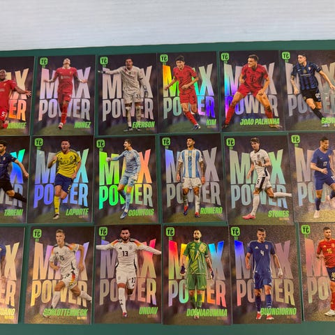 Blandede tins fra Topps Match Attax, Panini Adrenalyn XL og Pokemon.