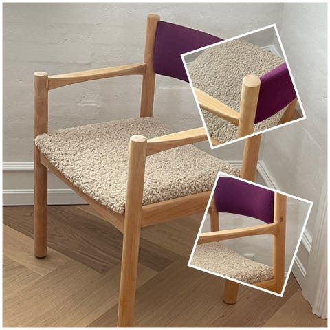 Spisebordsstol udført med stel / armlæn i massivt olieret egetræ.
