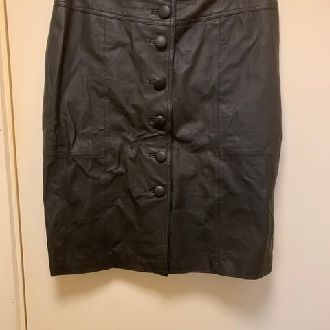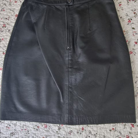 Fin lædernederdel uden synlige brugsspor udover at være gået lidt op i syningen foran (kan nemt sys).