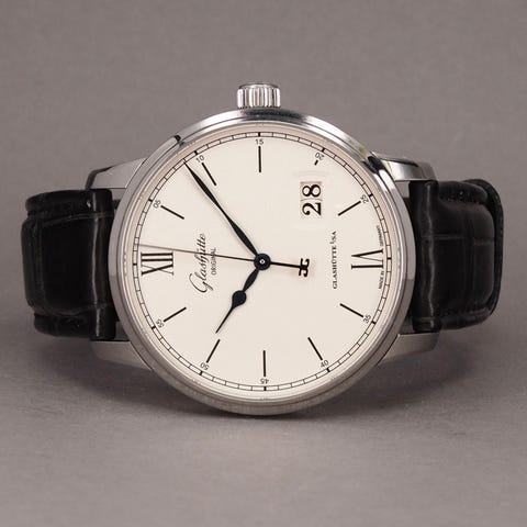 Et eksklusivt og moderne Glashütte Original, leveret komplet med bokse, papirer, certifikat og originale remme.