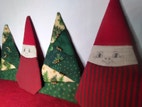Patchwork nisser og juletræer, Nisser 16 cm. høje og juletræer 15 cm. høje. Samlet pris.