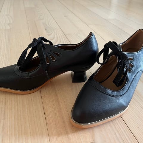 Pumps in size 39 in a nice chocolate brown colour. Only tried on, never worn. Still in their original box, as seen in the pictures.