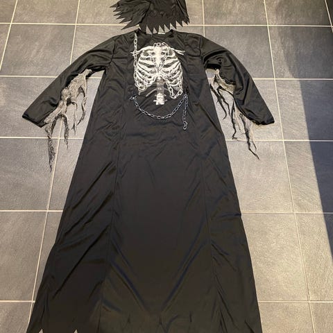 Unisex Halloween kostume bestående af en grøn bluse med røde detaljer, der forestiller revner og blodpletter. Bluse one size, ikke brugt meget. Inkluderer en tilhørende maske. Brugt, skal vaskes.