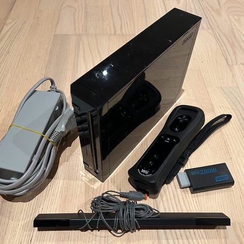 Nintendo Wii med controller og Wii2HDMI