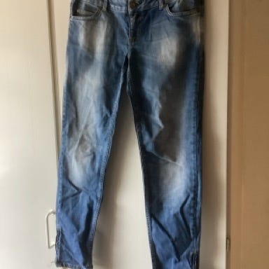 ONLY Jeans str. W30. Bukserne er mørkeblå med vidde ved fod.