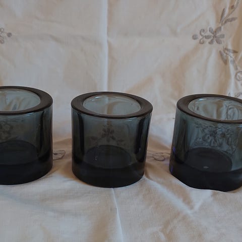 Evt. enkeltvis brune kr 125 pr stk, grå/smoke kr 50 pr stk og den turkisblå kr 50.