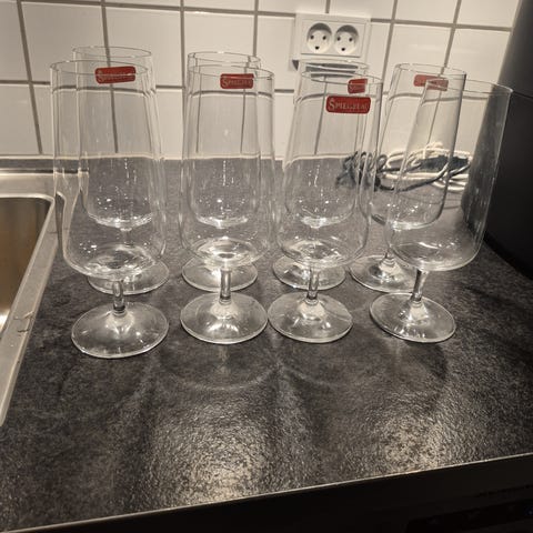 2 høje (15cm) glas fra Spiegelau. Glassene er uden hak, ridser og lign. Sælges samlet