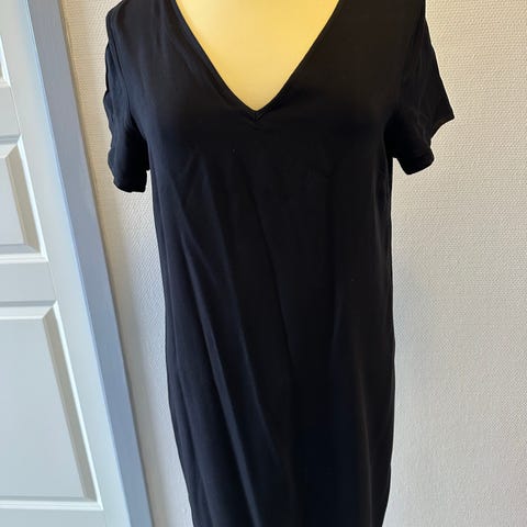 Vila Hverdagskjole i størrelse M, grå med sorte striber. Kjolen er ærmeløs og velegnet til hverdagsbrug.