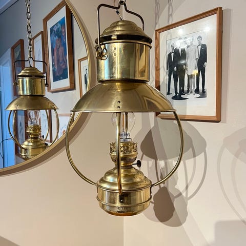 Skibslampe/Trawlerlampe i massiv messing,med brænder til lampeolie.