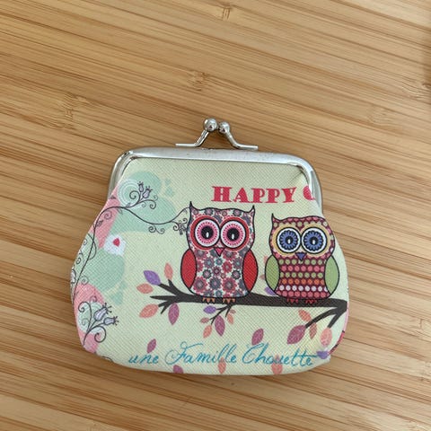 Smuk helt ny pung lavet i kork med blomster print, med 2 guldfarvet lynlås med 9 forskellige rum indvendig.