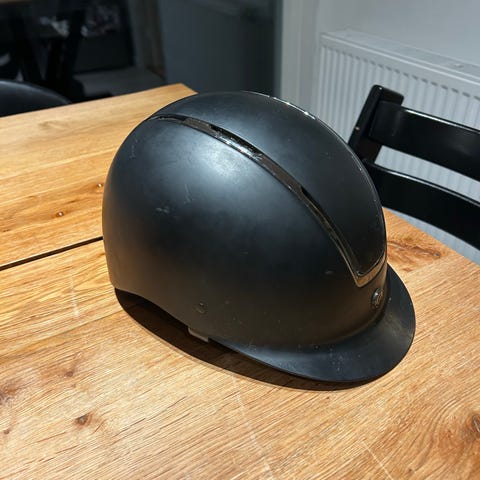 BR Microfiber Glitter ridehjelm sælges Hjelmen har justerbare stropper og indvendig polstring for komfort og sikkerhed ved ridning. Inkluderer opbevaringspose og ekstra tilbehør.