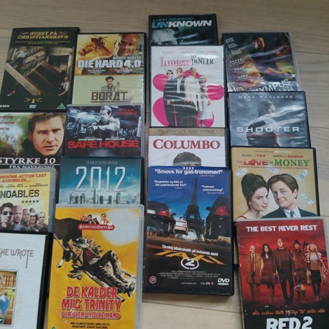 Pakke med 7 DVD-film indeholdende forskellige genrer såsom action, komedie og drama.