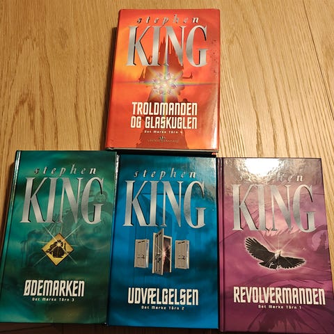 Af: Stephen King. Artia & Vinten & Aschehoug 1991-2006. 7 bind. Førsteudgaverne. Bind 2, i 2. oplag, de andre i 1. oplag. Pæn stand, kun beskedne brugsspor. De to første bind heftede, resten hardbacks med smudsomslag.