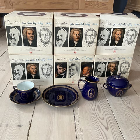 Bing & Grøndahl Kaffestel i porcelæn med blå og hvide mønstre