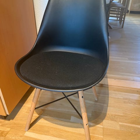 Fire spisestuestole fra JYSK i plast med stofsæde og robust materiale i en god højde. Mærket hedde Kastrup og de er i sort plast med massive egetræsben. Er samlede. Flotte og moderne og kun brugt få gange og fremstår som nye uden brugsspor.. Hynder kan evt. medfølge. Nypris pr. stol 449 kr. I alt 1796 kr. Spar over 500 kr. Sælges samlet for kun