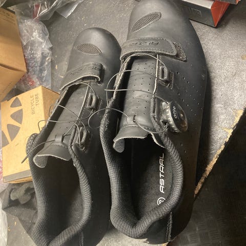 Astral cykelsko i str 44 med klampe. Kun brugt få gange.