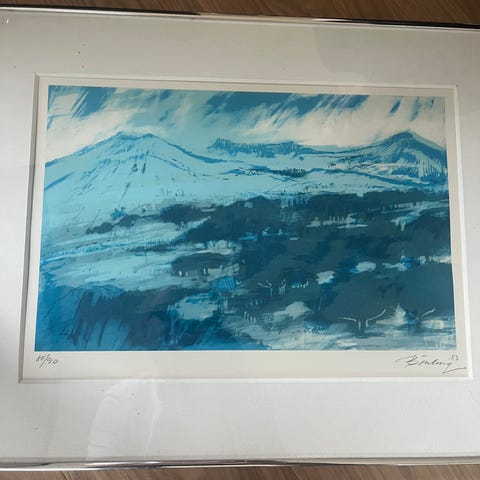 Litografien har været i familiens eje siden 1998, hvor min far fik litografien i forbindelse med sit medlemsskab af Danmarks Radios Kunstforening,