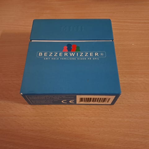 Sælger Bezzerwizzer Mini Familie – blå udgave, et hurtigt og hyggeligt quizspil, som hele familien kan være med til!