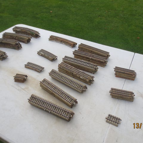 En masse skinner og kryds samt bane overgang i kasse . Generalt i pæn stand , men forvent lidt nusseri efter 50 års brug .