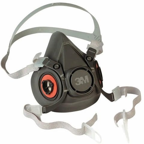 Friskluftmaske med ekstra visirdækkener og filtre.
