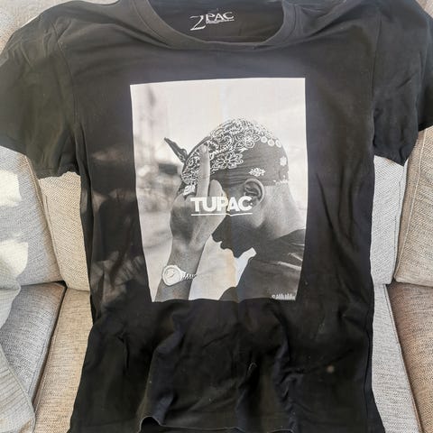 Sort Tupac hættetrøje fra Gildan. Str. S. Se mål på billederne.