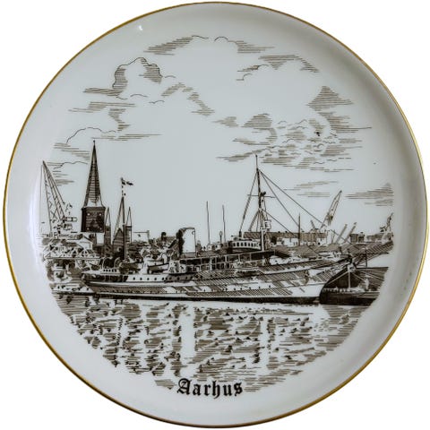 Flot hvid platte fra Bing & Grøndahl med en af Korsør's DSB færger og byvåben som motiv.