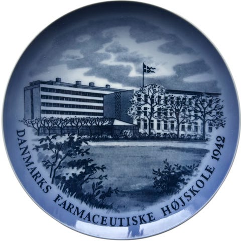 Super flot og sjælden blå platte fra Royal Copenhagens Apoteks serie.