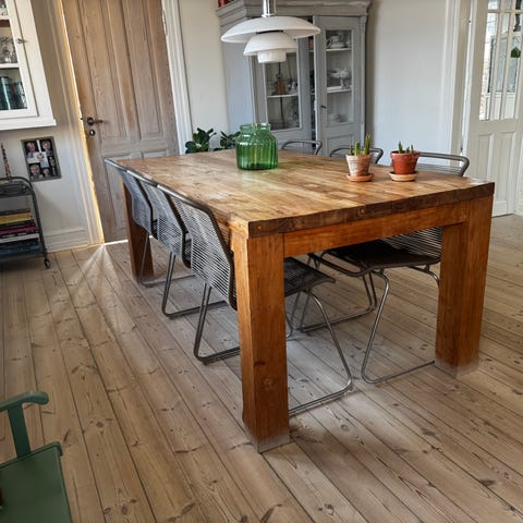 Jeg sælger mit one of a kind plankebord lavet af 100+ år gamle gulvbrædder og andet upcyclet genbrugstræ. Hvert bræt har sin egen historie og patina, hvilket giver bordet et helt særligt udtryk, som du ikke finder andre steder. Perfekt som spisebord, langbord til sammenkomster eller som et rustikt møbel i sommerhuset.