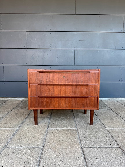 Den lave stol fremstår i fin stand, med intakt polstring.