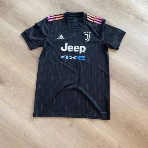 Adidas Humanrace Juventus fodboldtrøje i pink og hvid farve. Trøjen har korte ærmer og er lavet i let materiale egnet til sport og træning. Designet inkluderer Juventus logo, Jeep sponsor og Adidas branding. Passer til både træning og fritidsbrug.