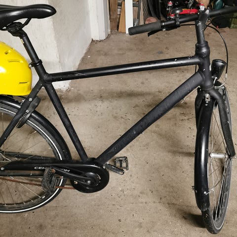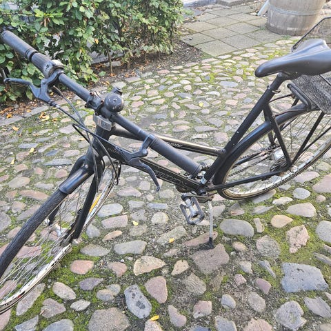 4 år. Brugt til bykørsel, cyklet få km, stået i garage. Kræver to nye hjul og ny kædeskærm. Bud modtages