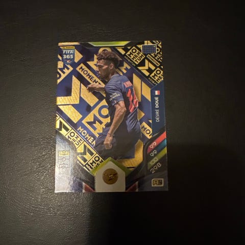 Panini Adrenalyn FIFA 365 2024 fodboldkort med Kylian Mbappé fra Paris Saint-Germain (PSG). Kortet er i guldudgave og signeret.