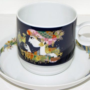 Fineste kaffestel “Romance blå blomst” fra 1960 af Bjørn Wiinblad for tyske Rosenthal porcelæn.