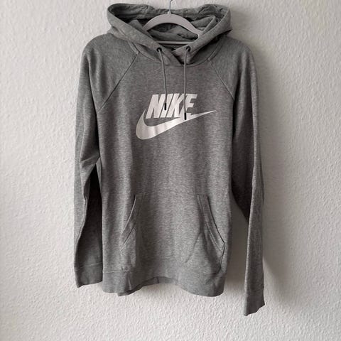 Nike Hoodie i størrelse S til herre i grå farve. Fremstillet i blødt materiale med hætte og frontlomme. Velegnet til afslappet brug og sport.
