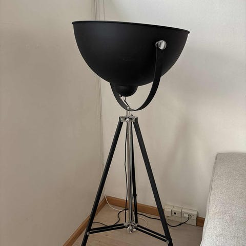 Fin gulvlampe uden skærm. Skal helst hentes på adressen, kan dog sendes på modtagerens eget ansvar for 51kr i porto.