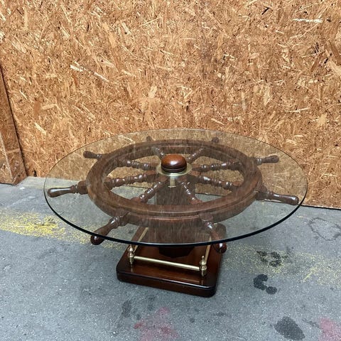 Sofabord/Bar/reol i form af klinkbygget jolle i mahogni,samlet med kobbernitter.